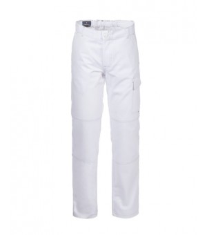 Pantalone da lavoro con elastico in vita posteriore, chiusura alla patta con cerniera e bottone scoperto, due tasche anteriori interne, una tasca posteriore applicata a destra chiusa con bottone, un porta metro, un portapenne e un tascone laterale applicati a sinistra chiusi con aletta e velcro, cuciture di colore a contrasto. *** TAGLIE 4XL E 5XL DISPONIBILI SOLO PER I COLORI 01 BLU E 12 GRIGIO ***