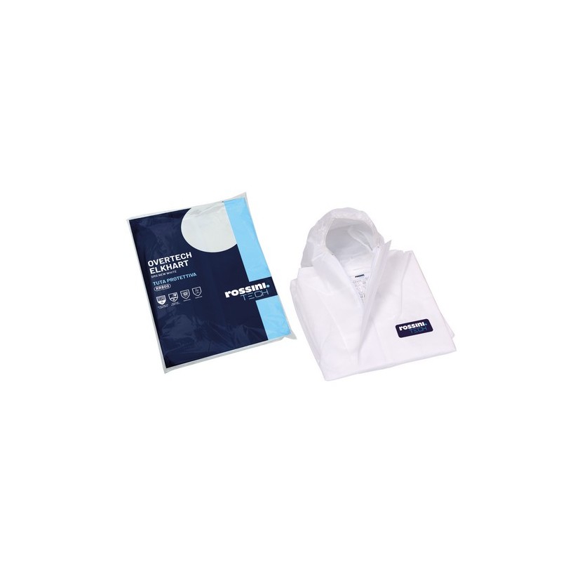 Tuta protettiva in tessuto polipropilene del marchio Rossini Tech contro aerosol, liquidi e spruzzi e particelle solide.