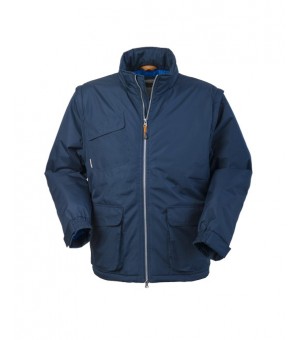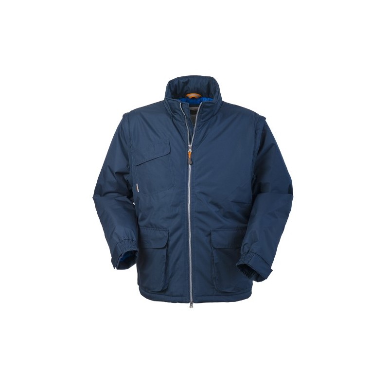 Giubbotto imbottito con chiusura anteriore con cerniera, cappuccio interno al collo chiuso con velcro e carr