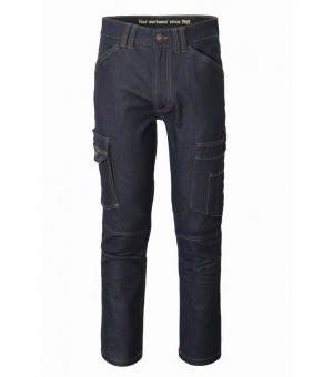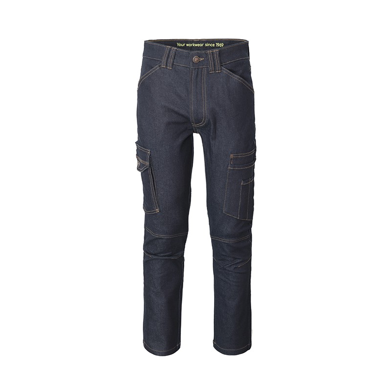 Tessuto denim elasticizzato con lavaggio enzimatico e finissaggio soft-touch. Design classico a 5 tasche, doppi passanti in vita e bordatura interna della cintura in colore fluo, pences alle ginocchia per maggior comfort. Borchiette in metallo con incisione