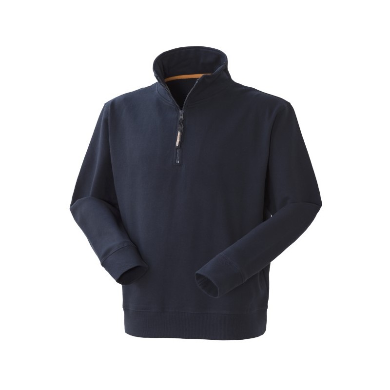 Felpa con collo alto chiuso con mezza zip (in metallo solo per il colore bianco), parasudore interno al collo di colore a contrasto arancio (in tinta per il colore bianco), polsi e fascia girovita in maglia elastica.