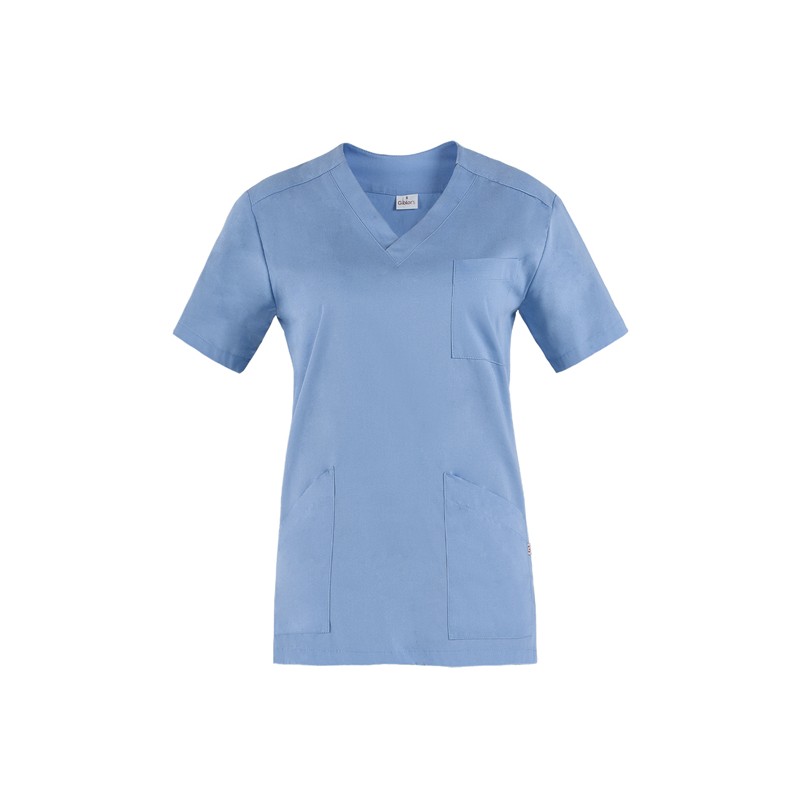 20P03K196 La casacca Milena ha le maniche corte e presenta una scollatura a V valorizzata da una fascia larga che si sovrappone sul davanti. Gli spacchi sui fianchi assicurano piena libert