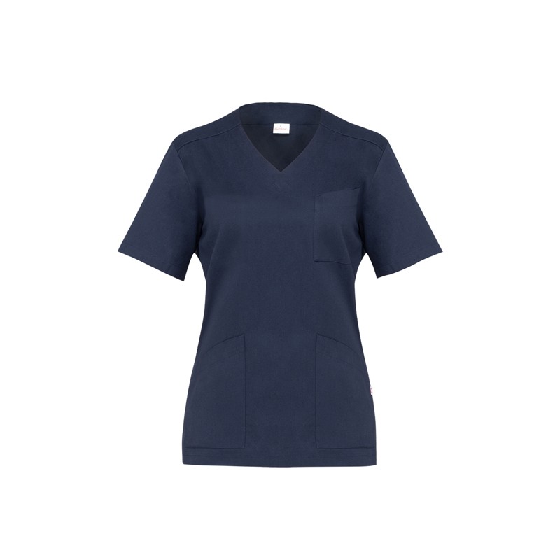 21P03K196 La casacca Milena ha le maniche corte e presenta una scollatura a V valorizzata da una fascia larga che si sovrappone sul davanti. Gli spacchi sui fianchi assicurano piena libert